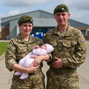 They stood outside the military building, holding their newborn, both smiling through tears — tears of joy for their miracle, and tears of sadness for the silence surrounding them.
